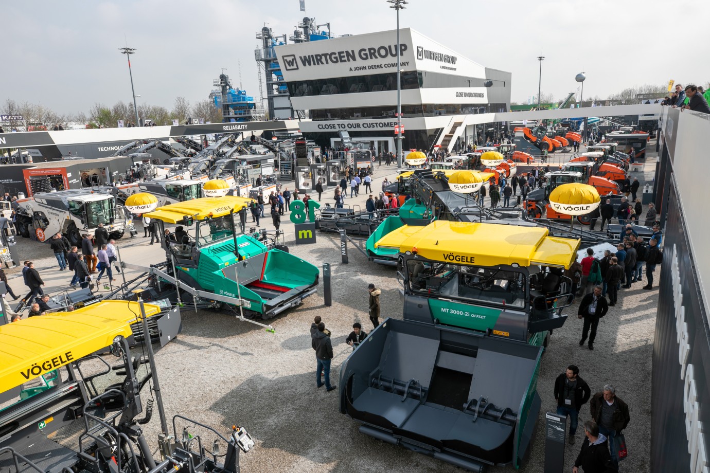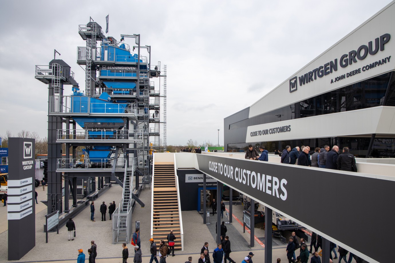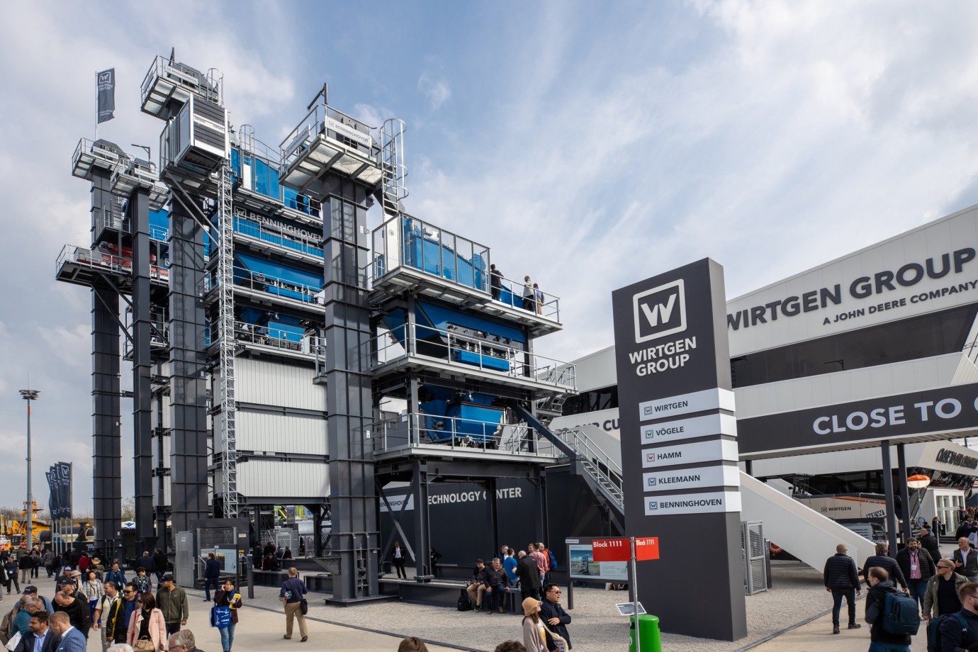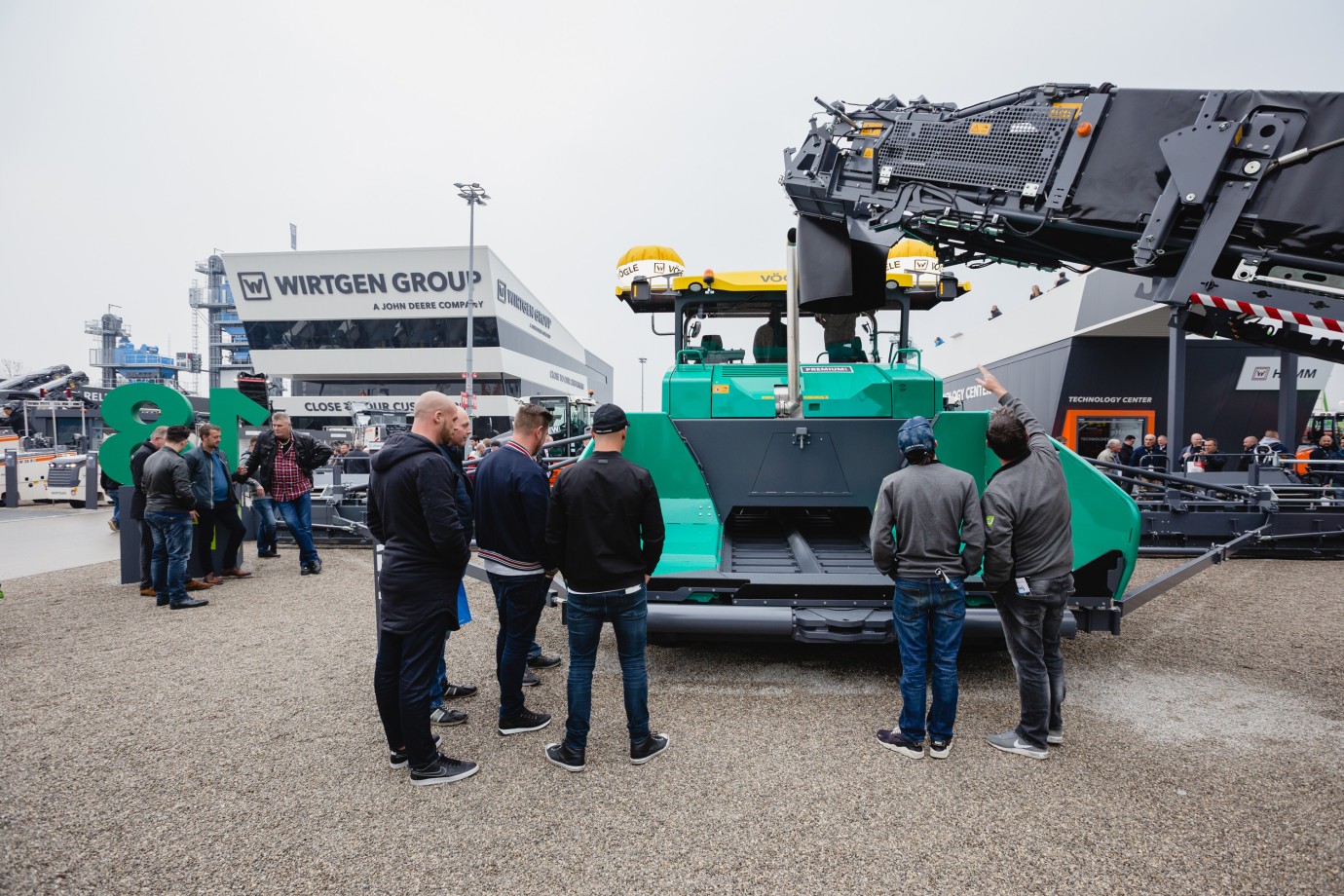 Today we portray future synergies and the great fit between the WIRTGEN GROUP product brands (WIRTGEN, VÖGELE, HAMM, KLEEMANN, and BENNINGHOVEN) and John Deere. In addition, the main pavilion, the heart of our stand is highlighted. Here is where everything happens: visitors and customers can enjoy a great atmosphere. The pavilion also holds special presentations, the customer service area in the style of a typical WIRTGEN GROUP workshop, a large walk-in fan shop with 166 items and the RoadClub area where WIRTGEN GROUP machine operators can enjoy a drink and a snack in a cozy rock style café.