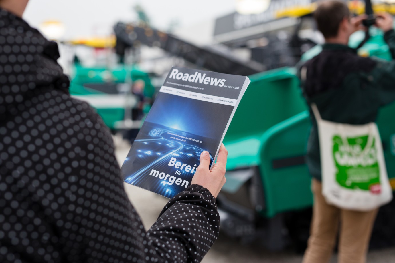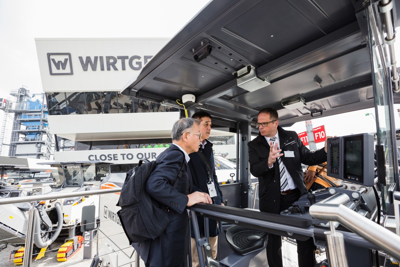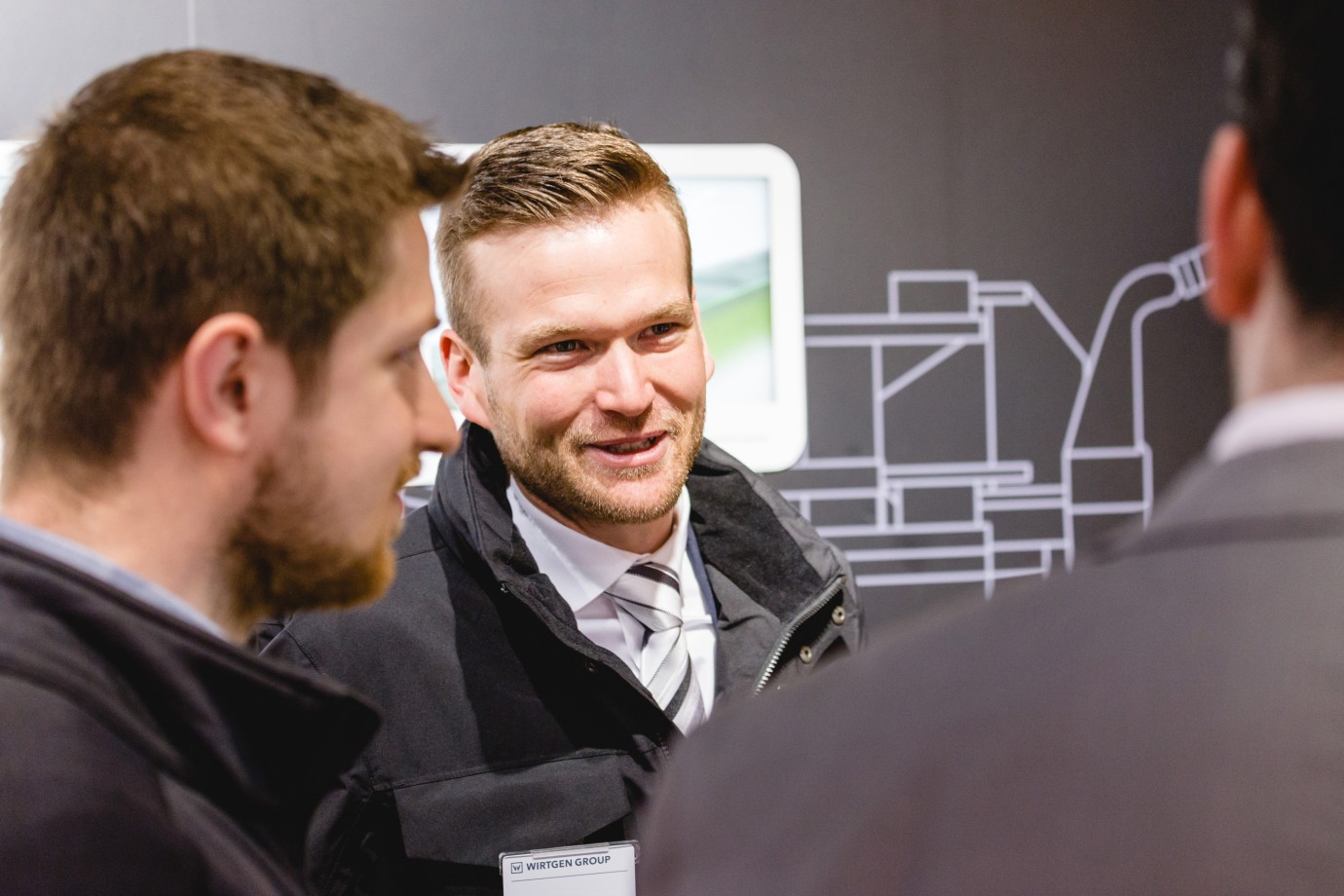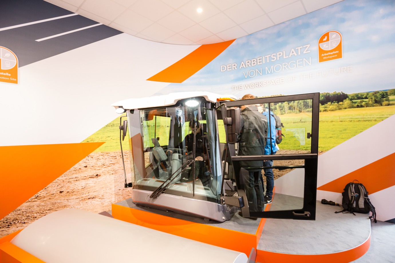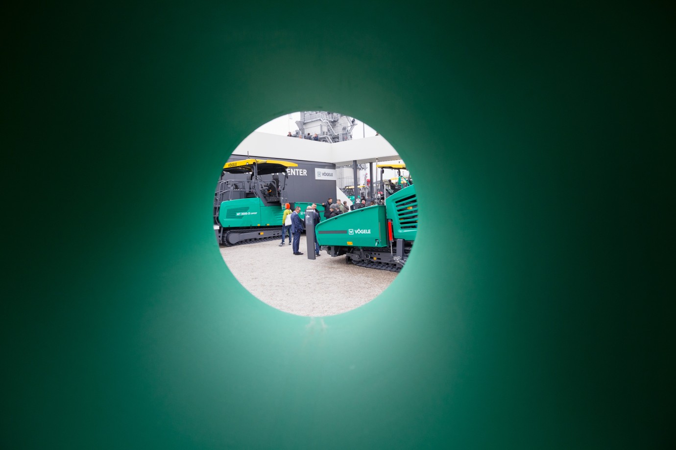 Today we portray future synergies and the great fit between the WIRTGEN GROUP product brands (WIRTGEN, VÖGELE, HAMM, KLEEMANN, and BENNINGHOVEN) and John Deere. In addition, the main pavilion, the heart of our stand is highlighted. Here is where everything happens: visitors and customers can enjoy a great atmosphere. The pavilion also holds special presentations, the customer service area in the style of a typical WIRTGEN GROUP workshop, a large walk-in fan shop with 166 items and the RoadClub area where WIRTGEN GROUP machine operators can enjoy a drink and a snack in a cozy rock style café.