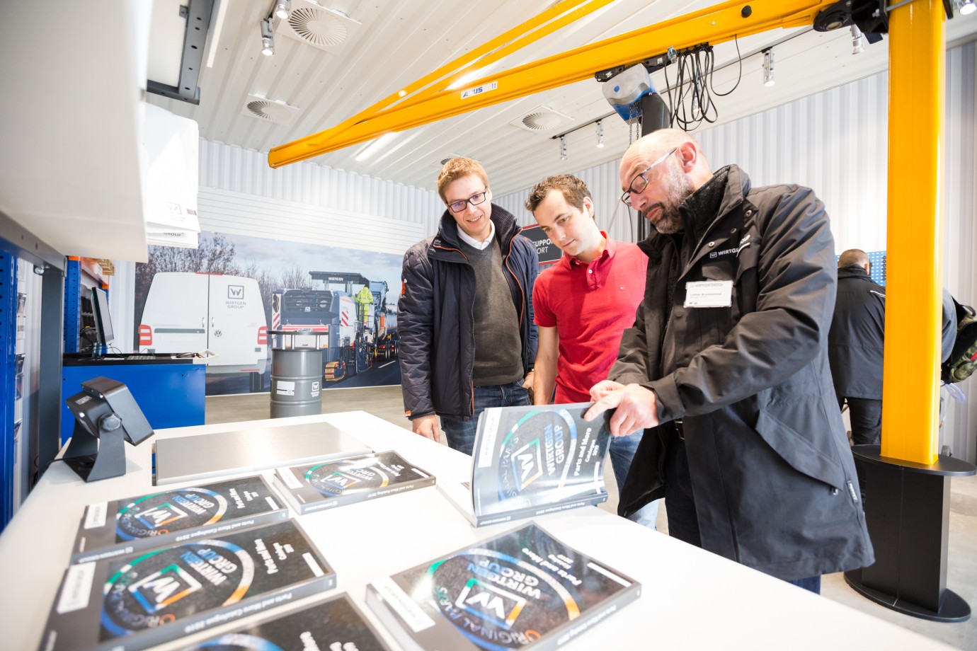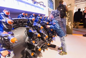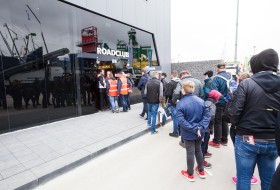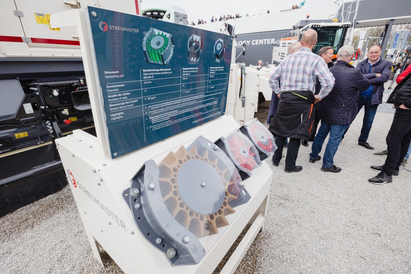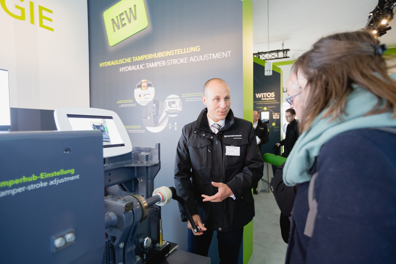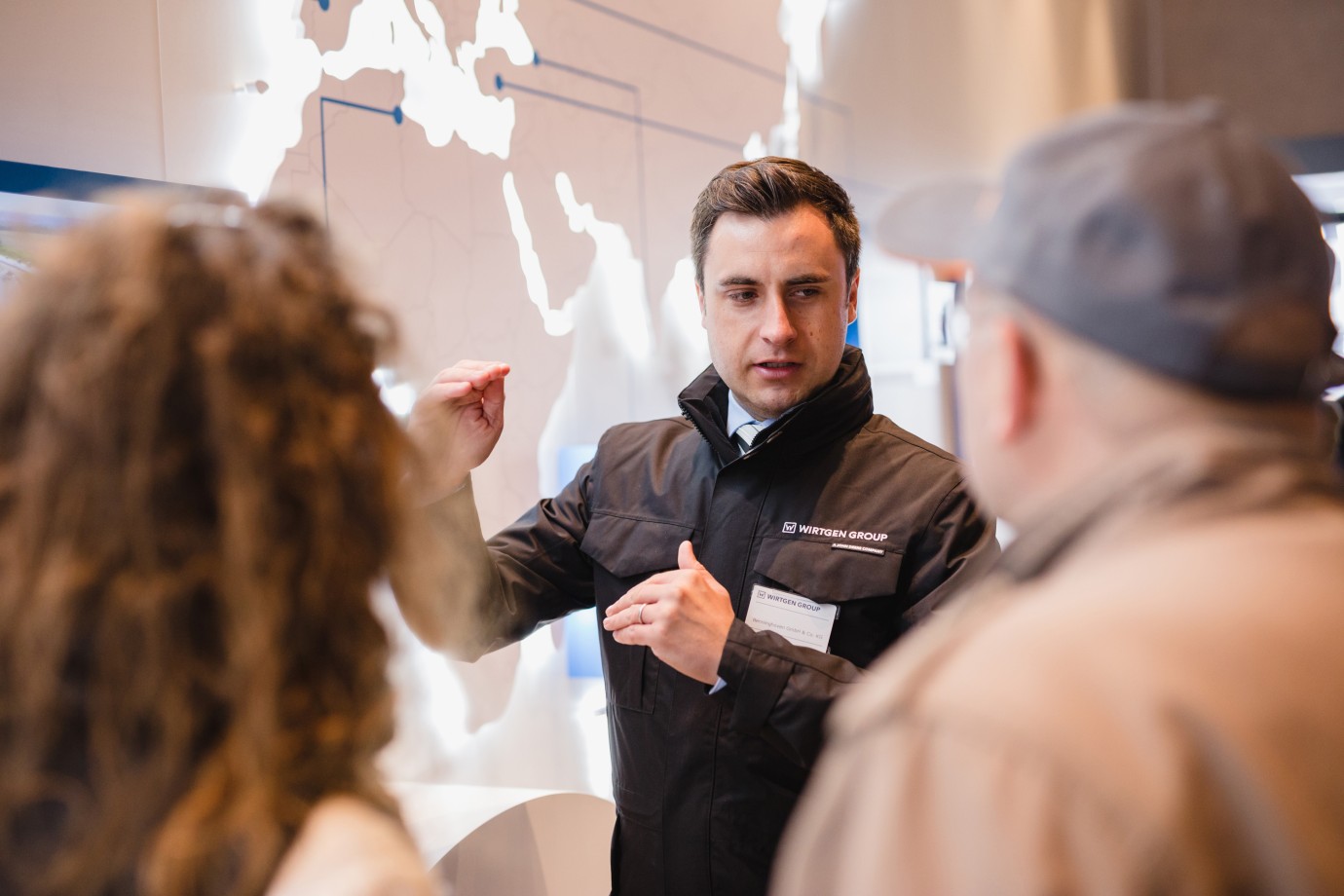 Today we portray future synergies and the great fit between the WIRTGEN GROUP product brands (WIRTGEN, VÖGELE, HAMM, KLEEMANN, and BENNINGHOVEN) and John Deere. In addition, the main pavilion, the heart of our stand is highlighted. Here is where everything happens: visitors and customers can enjoy a great atmosphere. The pavilion also holds special presentations, the customer service area in the style of a typical WIRTGEN GROUP workshop, a large walk-in fan shop with 166 items and the RoadClub area where WIRTGEN GROUP machine operators can enjoy a drink and a snack in a cozy rock style café.