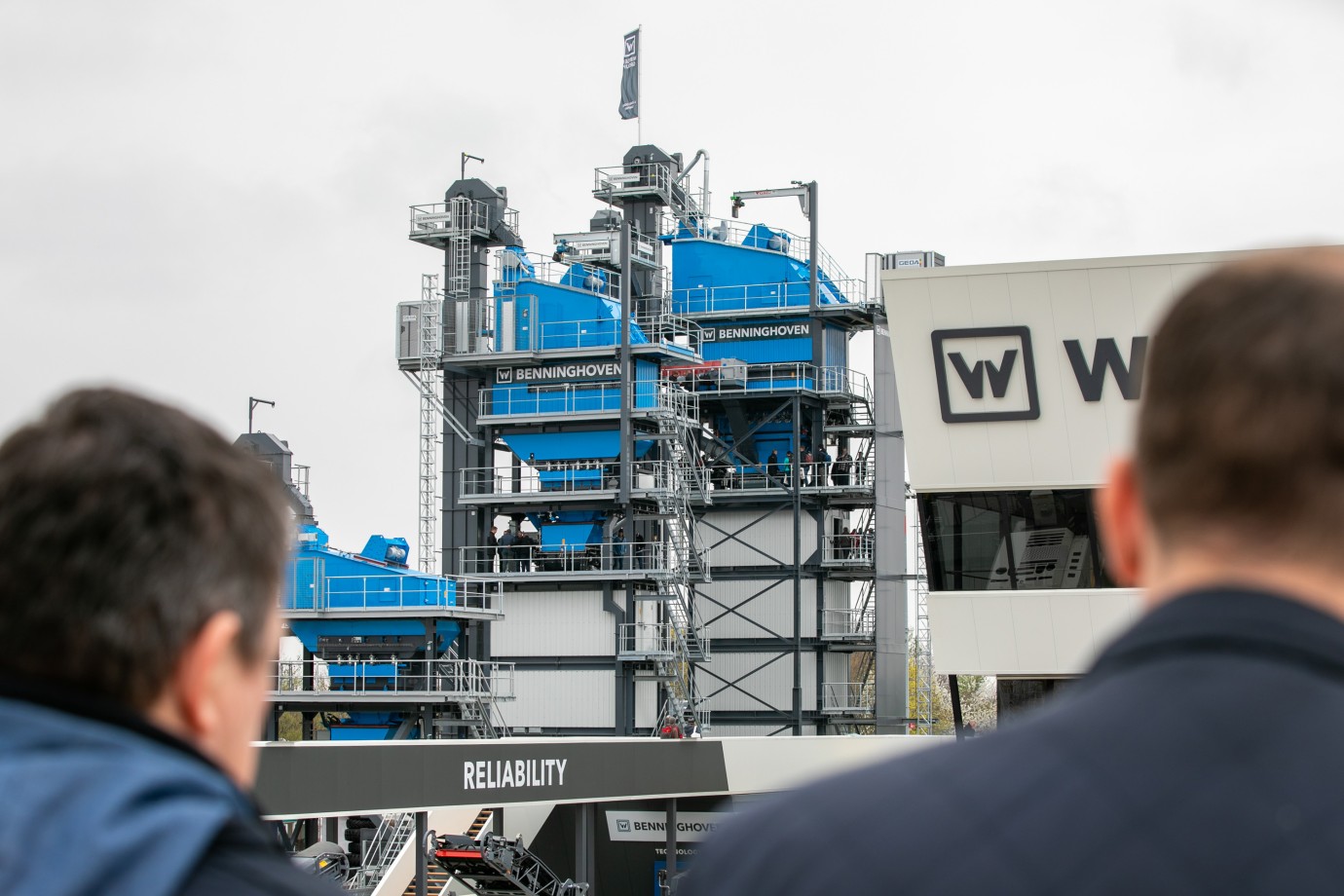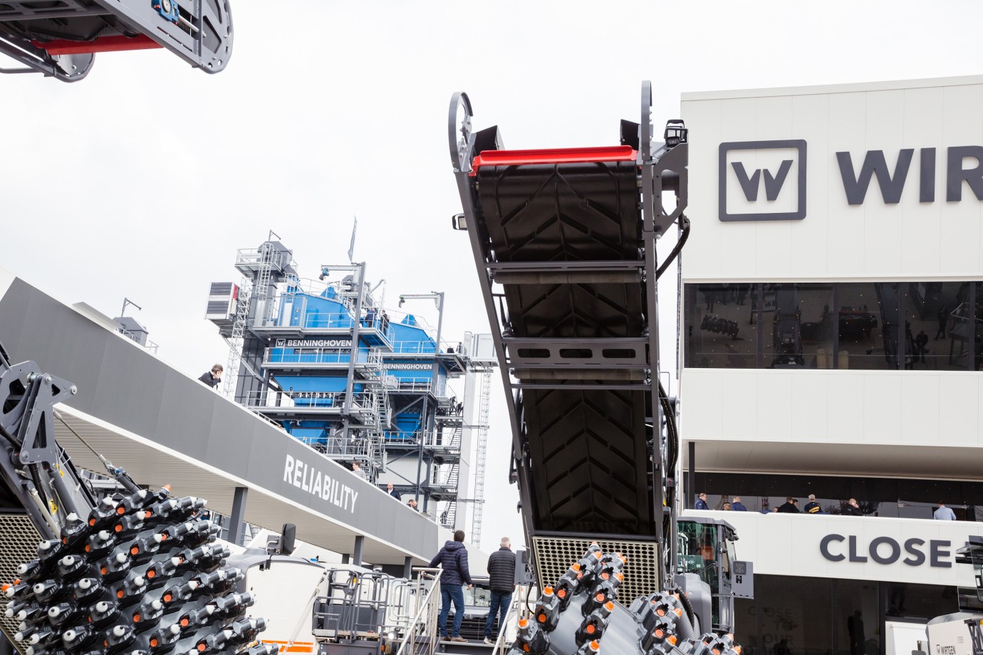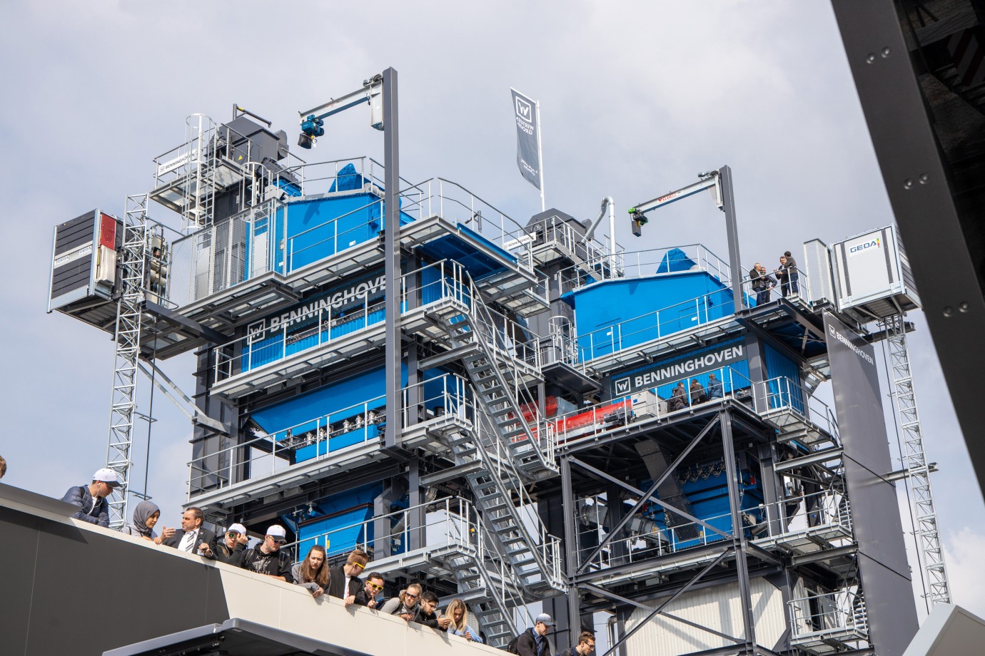 BENNINGHOVEN stands out with an impressive three asphalt mixing plants on display at the WIRTGEN GROUP stand. The company highlights its new product philosophy that is based on the modular concept of asphalt mixing plants. The models are fast and easy to configure, transport and assemble. There are two units from the ECO series, transportable asphalt mixing plants in container design, the ECO 1250 and the ECO 3000, and one unit from the TBA series, the TBA 4000, available with hot-gas generator.