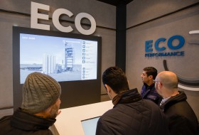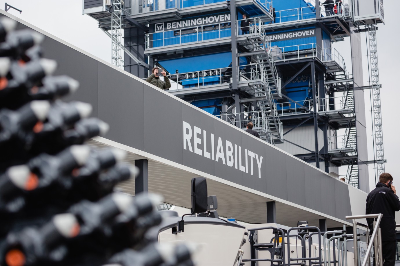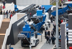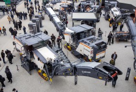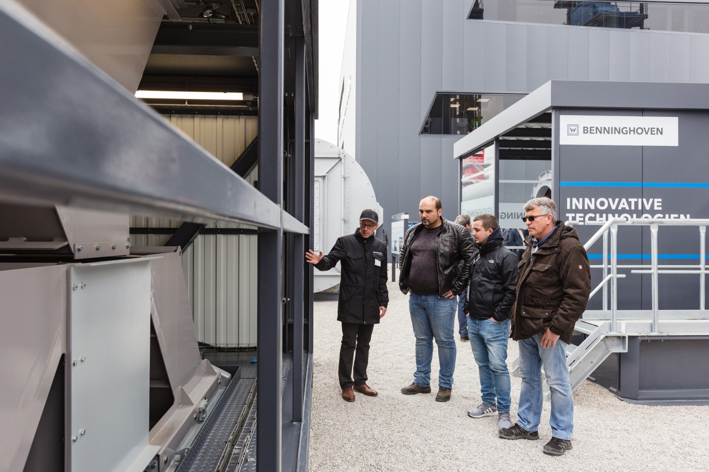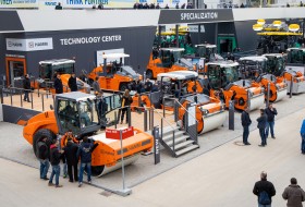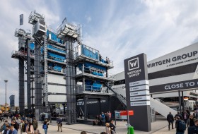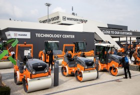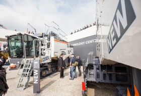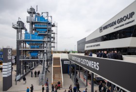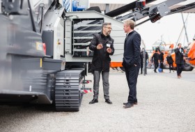 BENNINGHOVEN stands out with an impressive three asphalt mixing plants on display at the WIRTGEN GROUP stand. The company highlights its new product philosophy that is based on the modular concept of asphalt mixing plants. The models are fast and easy to configure, transport and assemble. There are two units from the ECO series, transportable asphalt mixing plants in container design, the ECO 1250 and the ECO 3000, and one unit from the TBA series, the TBA 4000, available with hot-gas generator.