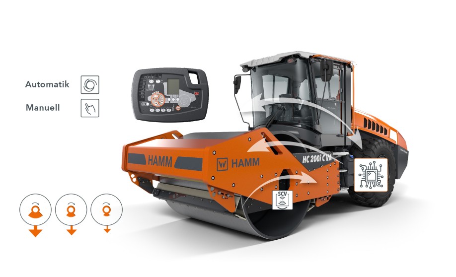 Assistenzsystem für mehr Prozesssicherheit: In den Walzenzügen passt HAMM mit dem Verdichtungsassistent Smart Compact die Verdichtungsenergie automatisch an den Zustand des Bodens an. Dazu hat HAMM die VA-Bandagen (VA = Variable Amplitude) entwickelt. Damit steigt die Prozesssicherheit, und die Qualität der Verdichtung erreicht ein neues Niveau. Zugleich werden die Fahrer spürbar entlastet.