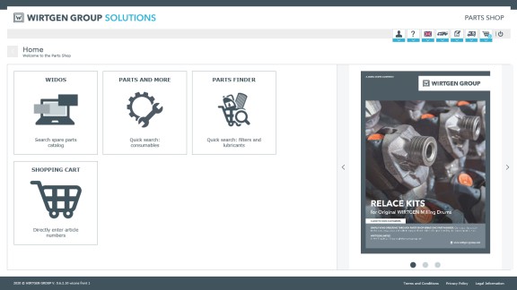 The Parts Shop provides you with a variety of search options to quickly find the part you are looking for – like our electronic WIDOS spare parts catalogue, for example, which makes it easy to identify and order all the spare parts you need for all your WIRTGEN GROUP machines.