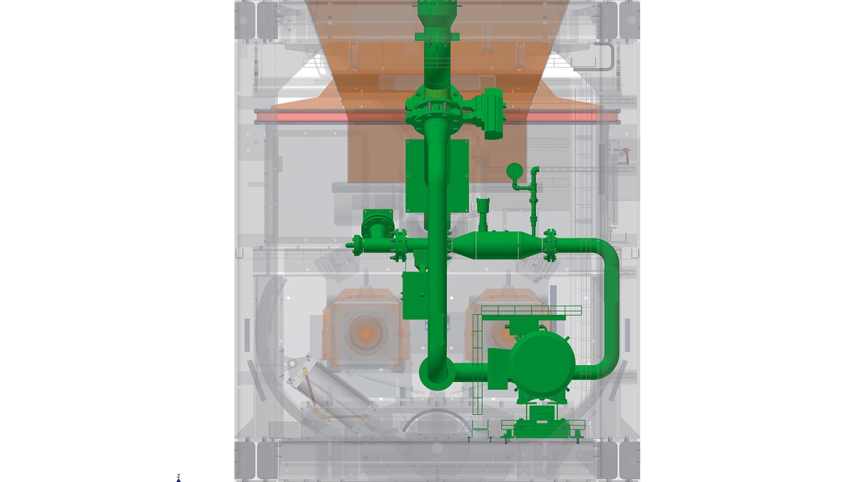 The foamed bitumen is produced in a pressurized chamber that is integrated into the mixer and connected to the conventional bitumen supply system. A small quantity of water and air is then injected at high pressure into the normal bitumen, which is at a temperature of 175°C. The surface area of the bitumen rapidly expands by a factor of 20 and the resultant foamed material is then added into the mixer, where it is mixed with mineral. The large sur-face area causes foamed bitumen to durably coat the mineral, lending it the required durability, while the water contained in it evaporates. One of the characteristics of low-temperature asphalt is its lower viscosity, which makes it temporarily easier to pave.