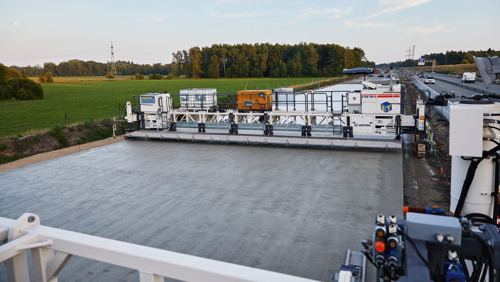 Dual-layer wet-in-wet concrete paving: BT Beton-Technik used cutting-edge paving technology to build 14.5m-wide dual-layer concrete pavements precisely, economically and quickly – while reliably meeting the client‘s tight schedule.