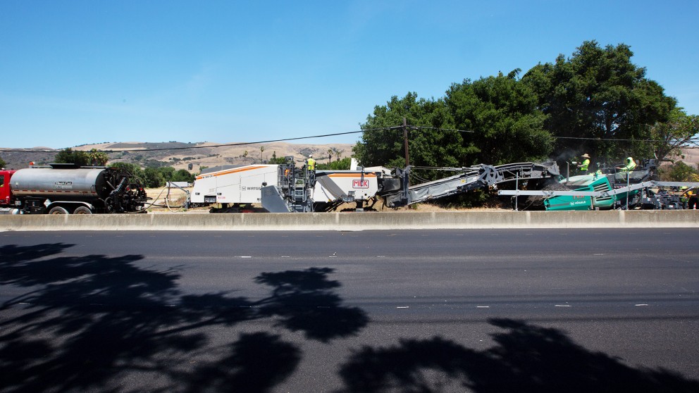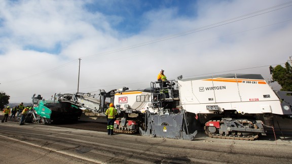 The method has also convinced John Moffat, Vice-President of MCK Services: ‘Cold recycling with state-of-the-art machines like the W 380 CRi saves the taxpayer a lot of money. Over the past ten years, MCK has recycled close to 2.3 million square metres of pavement. In comparison with conventional rehabilitation methods, cold recycling cuts our costs by around 40%. On this project alone, we recycled about 205,000 square metres of existing pavement and were able to re-use 100% of the material we removed.’