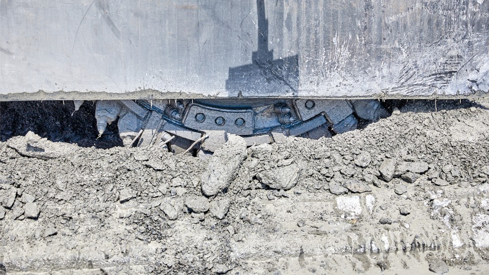 Concrete milling is already an established technology on projects around the globe. These days, thanks to technological advances, almost all hardnesses and grades of concrete pavement can be cost-efficiently removed. This has been clearly demonstrated in countless successfully completed concrete milling projects. Specially modified cold milling machines and many years of systematic development in the field of expendable cutting tools guarantee high productivity and efficiency when milling in hard concrete. The removal of reinforced concrete pavements containing tie-bars, dowels and rebar mats is also possible. At the same time, selective removal enables the separation of concrete layers with different properties and, consequently, also the reduction of contaminated material. What’s more, the method offers further benefits in terms of environmental protection: As a rule, milled concrete can be recycled without any further treatment. The vibration-free procedure is characterised by low noise and low dust emissions and fulfils all official building regulations, economic provisions and other relevant requirements.