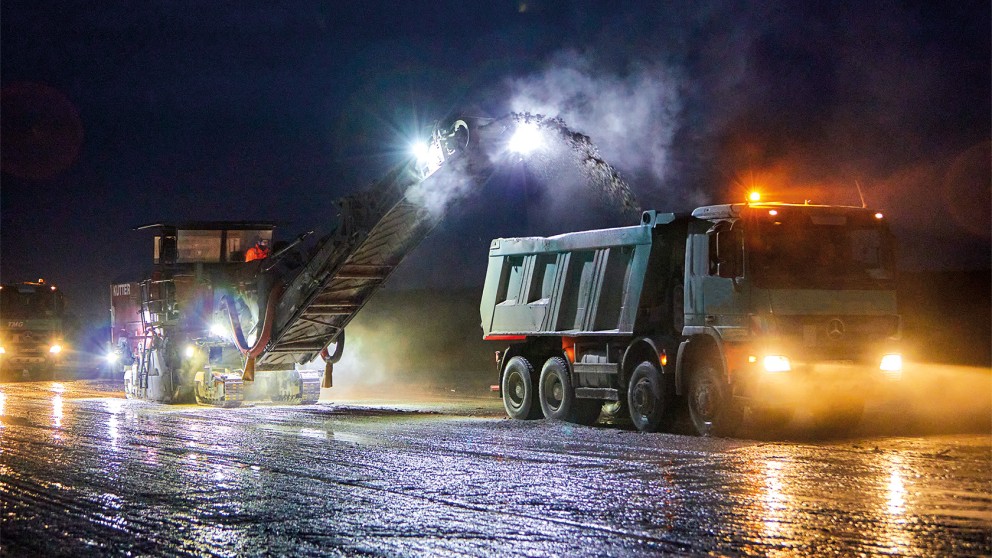 ‘In order to get through this challenging project and deliver within the tight deadline, we constantly had ten (and sometimes fourteen) W 250 Fi class large milling machines working simultaneously in two shifts. We also always had another five identical backup machines on-site as reserves.’