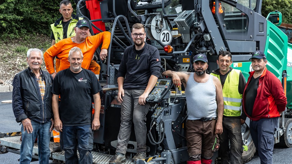 The team at Karl Müller Tief- und Straßenbau is proud of their successful work – and their new “colleague” SUPER 1803-5 X.