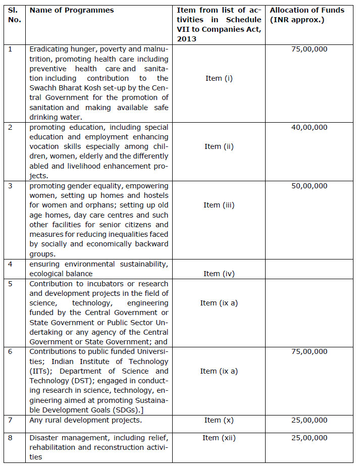 4. The Company may also collaborate with other companies for undertaking projects or programs or CSR activities.