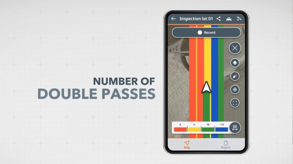 During compaction, the app records the most important compaction parameters and combines these with the position data that is determined by the smartphone or by the Smart Receiver (GNSS receiver). Smart Doc also documents the number of double passes, the current driving speed, the HMV compaction value, the proportion of jump operation, frequency, amplitude and the asphalt temperature and presents the compaction status in a graphic form.
