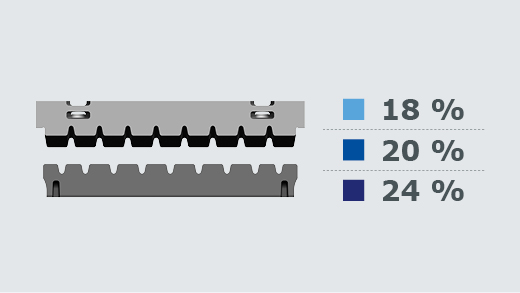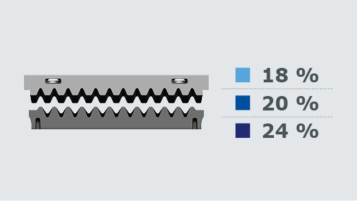 For application in natural stone and recycling, we offer a selection of crusher jaws with different tooth shapes. Depending on the application and component, the manganese share of the material varies – for better differentiation we also work here with different colours.