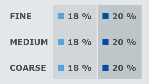 For simple identification and easy differentiation of the various rotor ledges, each material is identified by a separate colour.
