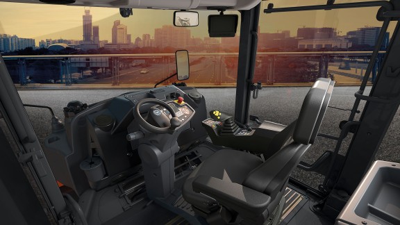 Le concept de commande Easy Drive allie un poste de conduite optimisé d'un point de vue ergonomique à une structure de commande bien pensée. L'utilisation intuitive et compréhensible dans toutes les langues de la série HX en fait partie ; elle se manie intuitivement et avec une prise en main ultrarapide. Le volant sert à manœuvrer l’engin ; toutes les autres fonctionnalités importantes sont commandées à partir d’un levier de conduite et d’un accoudoir multifonction. La position des accoudoirs et l'angle d'inclinaison de la colonne de direction sont réglables. Et ce n’est pas tout : un accès ergonomique, sur demande des accoudoirs rabattables ainsi qu'une descente confort et des fonctions pratiques telles que deux prises 12 V, deux prises USB et de nombreux compartiments de rangement.
